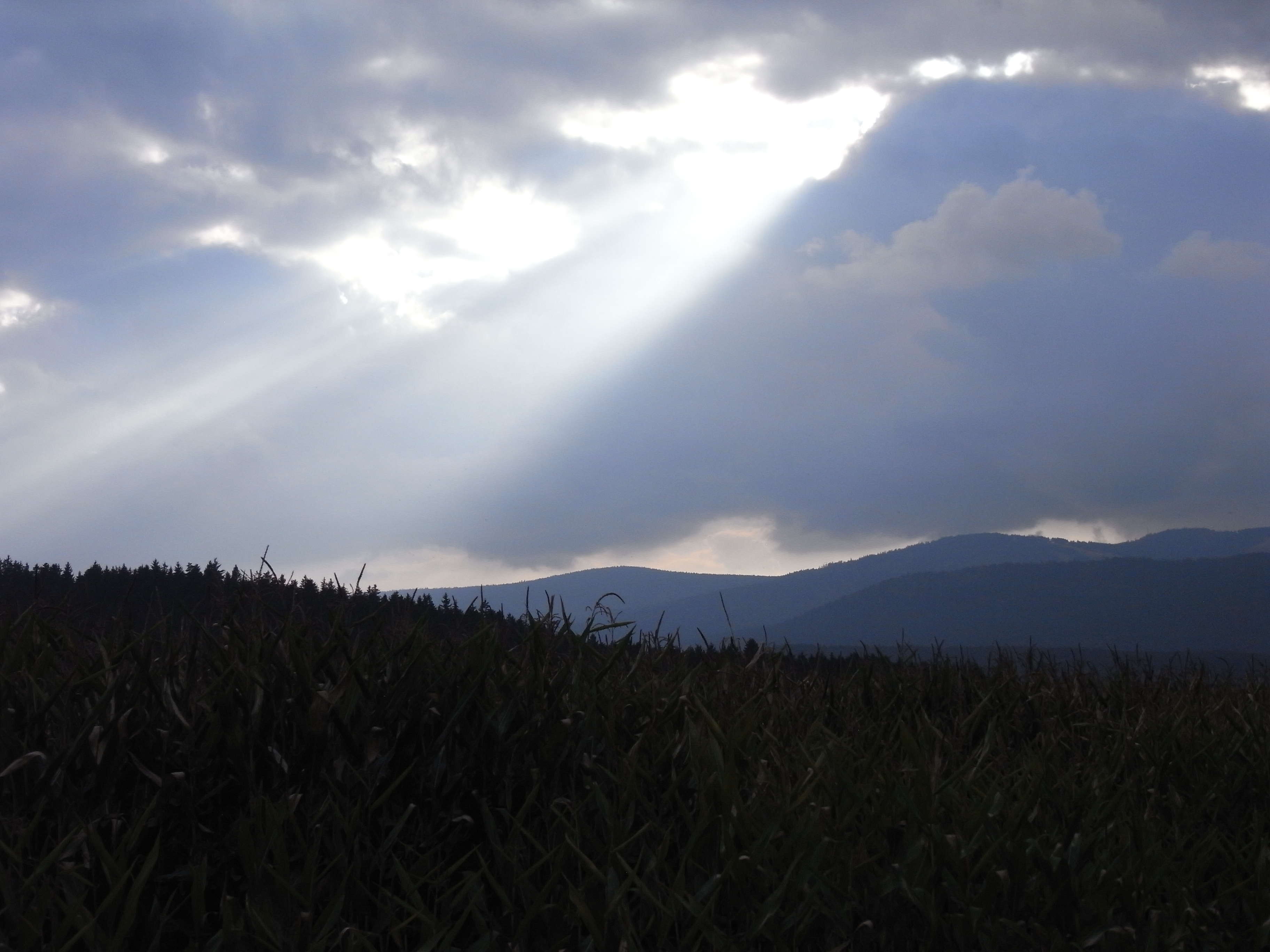Der Folgetag war erneut ein Bilderbuchtag. Blauer Himmel, davor grüne und sich allmählich gelb färbende Bäume, und dazu durch die laue Luft schwebende Altweibersommerfäden. Unter solch wunderbaren Bedingungen sind wir von Hermannsried in der Nähe von Bischofsmais zum Landshuter Haus hinauf gegangen, und nach einer Einkehrpause mit fantastischen Weitblick bis zum Hauptkamm des Bayerischen Walds durch die Wüstung Oberbreitenau in einem Borgen zurück. Eine schöne, abwechslungsreiche Halbtagesunternehmung, während der ich auch meinen Wasserfilter (er ist ja so schön klein, dass man ihn überallhin mitnehmen kann) eingesetzt habe: es gibt einige Bäche, deren Quellen weiter oberhalb des Wegs am Hang entspringen. Das Wasser weiter unten habe ich sicherheitshalber trotzdem gefiltert und wieder festgestellt: Köstlich!