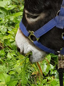 Gegen Sturheit unserer neuen Freunde müssen wir an beiden Tagen nicht kämpfen. Aber sie sind immer – wirklich immer – hungrig und wollen ständig am Wegrand essen. Es kann anstrengend sein, über eine schöne grüne Wiese zu gehen, und die Tiere zum Weitergehen zu bewegen – dabei muss man schon mal liebevoll-deutlich sein.