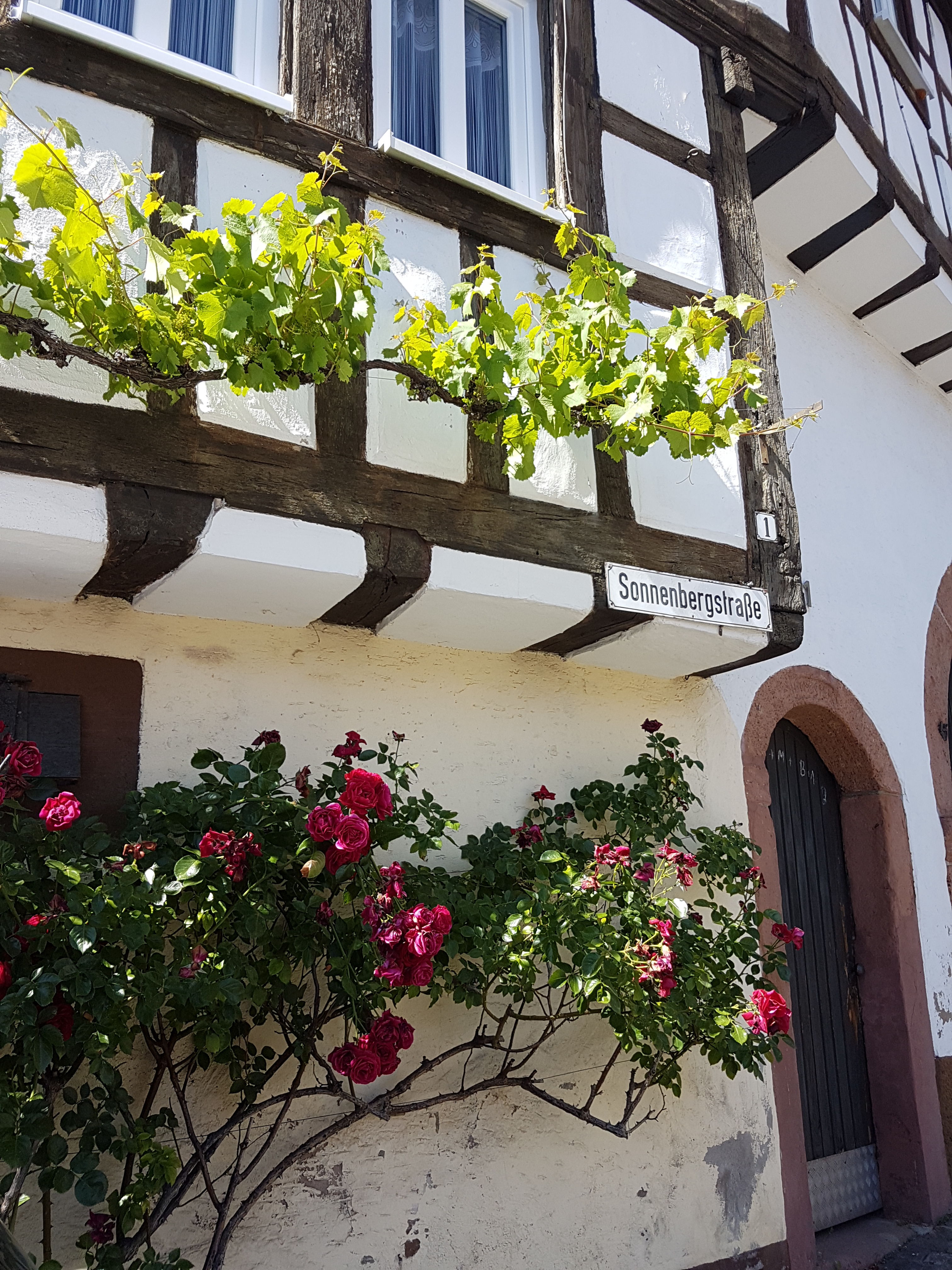Sonnabend vor gut einer Woche geht es los. Für die An- und Abreise muss man bei der Entfernung von Hamburg bis zur Südpfalz jeweils einen ganzen Tag einplanen, auch wenn alles wie bei mir mit den Zugverbindungen sehr gut funktioniert. Am späten Nachmittag komme ich am südlichen Ende des kleinen Städtchens / großen Dorfs Klingenmünster an und habe gleich zum Auftakt einen hübschen kleinen Fußweg zu meinem Hotel im benachbarten Gleiszellen-Gleishorbach. Bereits jetzt ist es sehr warm und herrlich sonnig, ich komme durch lichten Laubwald und einen Weinhang und erhalte damit einen guten Eindruck, was mich in den kommenden Tagen landschaftlich weiter begleiten wird. Kurz vor dem Ziel sehe ich eine größere Anzahl von kleinen Fallschirmchen im blauen Himmel dahin treiben, alle mit einer Fracht, die ich aus dieser Entfernung nicht erkennen kann. Ich habe nicht herausbekommen, was es damit auf sich hatte – vielleicht so etwas wie Luftballons mit Briefen für die späteren Finder?