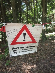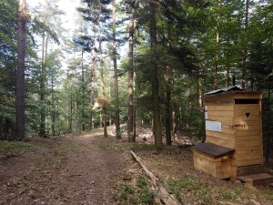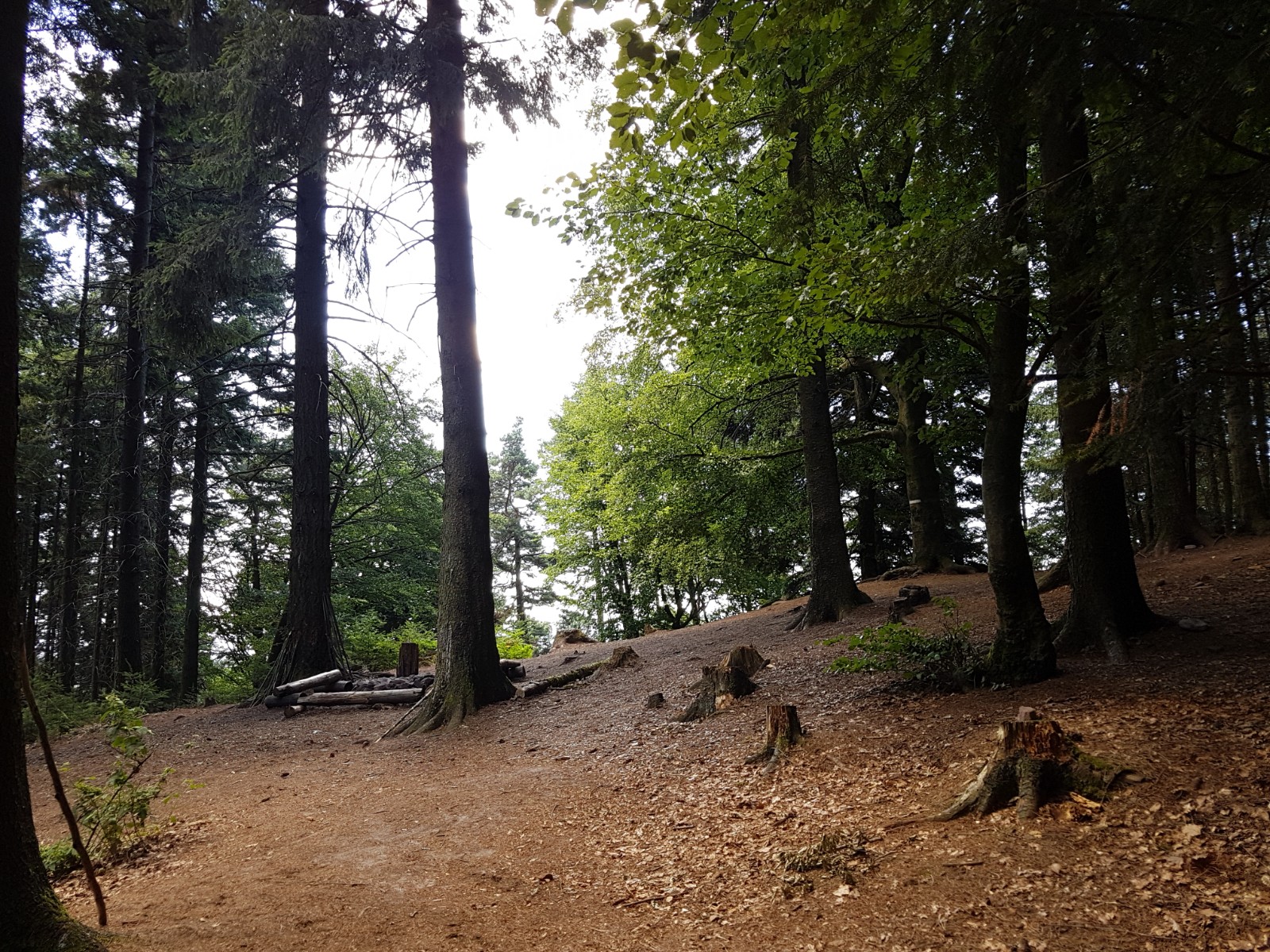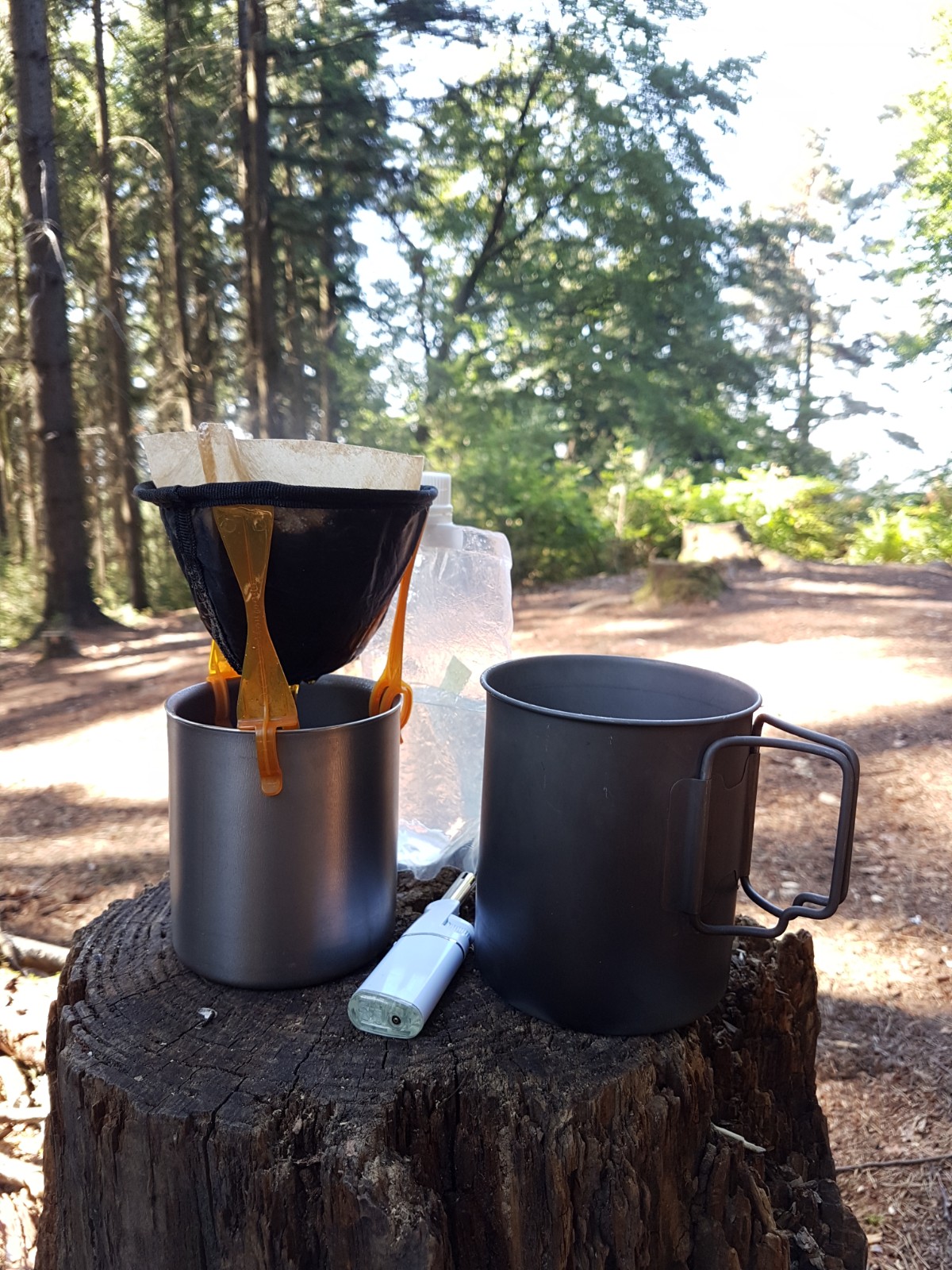 Beim Frühstückmachen und beim Packen fehlt mir irgendeine Ablagemöglichkeit – es gibt nur den staubigen Waldboden oder die Baumstämme um die Feuerstelle, oder Ästchen an den Bäumen zum Aufhängen. Hier würde ich mir so etwas Elementares wie einen Tisch und eine Bank wünschen, wie es sie ja auch an vielen Rastplätzen gibt. Ich glaube auch nicht, dass es der Natur oder der Trekkingidee sehr schaden würde, wenn nicht alle Sachen schmutzig werden müssen.