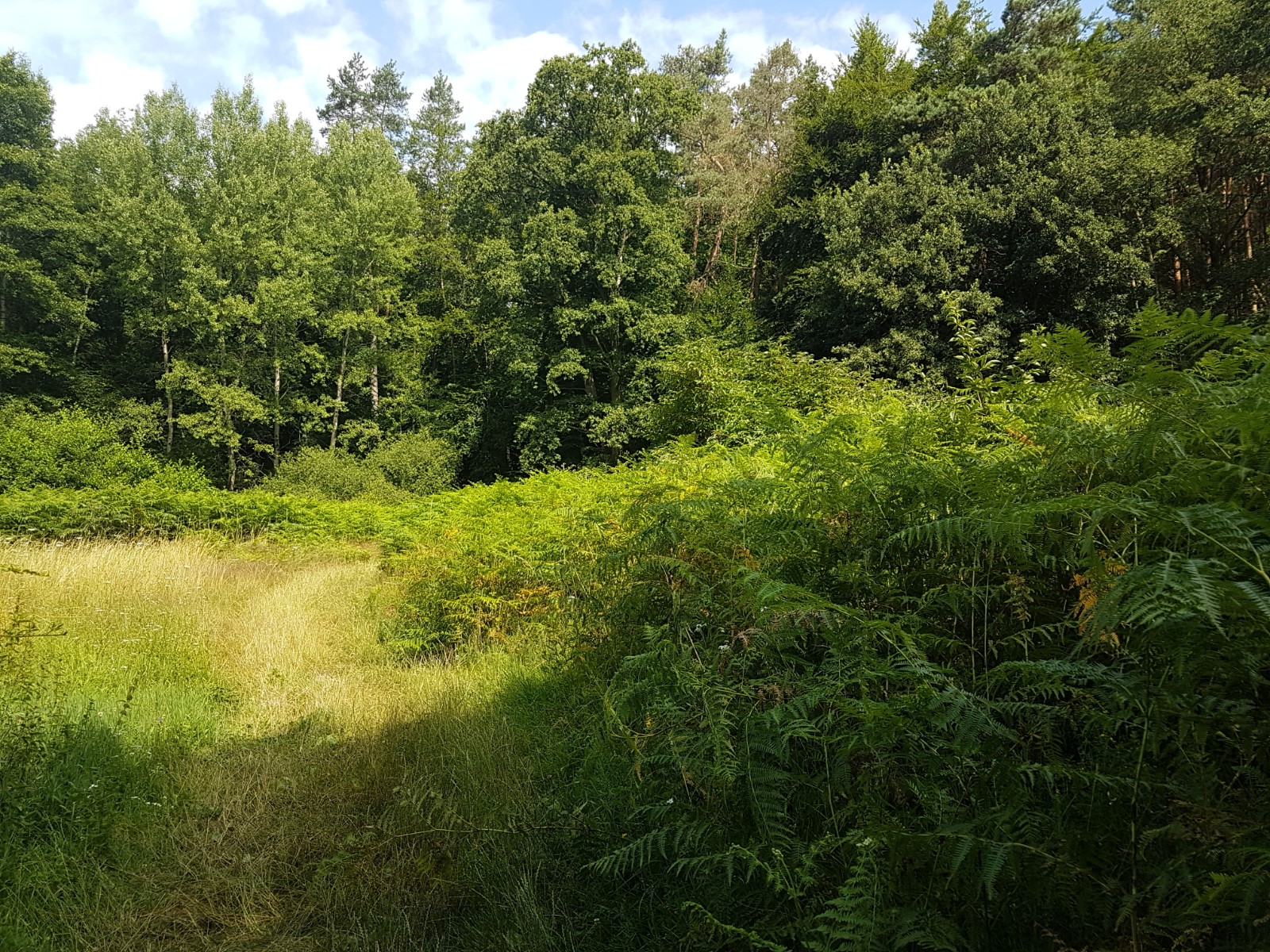 und sehr lecker; ich nehme mir dafür extra etwas mehr Zeit, bevor ich mit dem Bus nach Birkenhördt fahre. Von dort will ich zum Trekkingplatz 2 wandern, der in diesem Jahr verlegt wurde. Die Strecke ist nicht lang, aber nun habe ich wieder die volle Last dabei. An einer Stelle führt der Weg durch Farn, das vereinzelt so groß ist wie ich – es wirkt verwunschen.