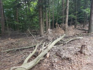Der Zuweg zum Trekkingplatz zieht sich ziemlich in die Länge und führt fast die gesamte Zeit sachte bergan. Als ich da bin, ist mein erster Gedanke, ob hier nach den Holzarbeiten nicht noch etwas hätte aufgeräumt werden können.