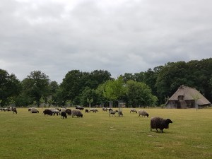 Es sind vor allem Mutterschafe mit ihren schwarzen Kindern – und eines davon hat es geschafft, sich durch den Zaun zu quetschen und läuft nun davor blökend hin und her, während das Mutterschaf drinnen antwortet. Ich spreche ein junges Paar an, das hier auch gerade Halt macht und schlage vor, dass wir das Lamm einkreisen und durch das Gatter – das man zum Glück öffnen kann – wieder zurückbringen. Es kommt noch ein Spaziergänger mit 2 super erzogenen Hunden dazu, und nach einigen Fehlversuchen schaffen wir es gemeinsam, das Lamm und noch ein weiteres, das ebenfalls ausgebüxt war, wieder mit den Muttertieren zu vereinen. Ich bin sehr froh über dieses Ergebnis, hoffe aber, dass der Schäfer bald mal den Zaun kontrolliert und repariert.