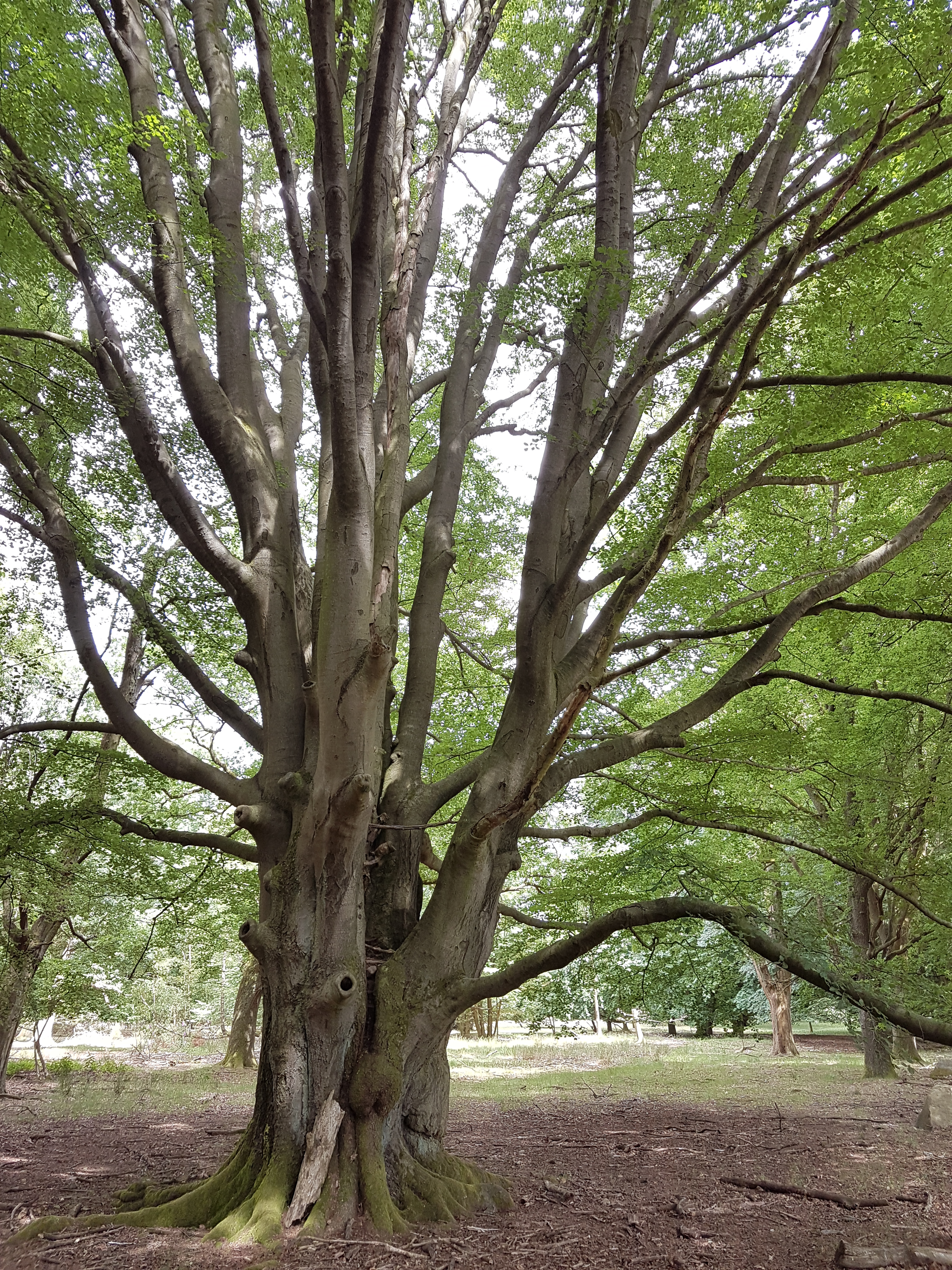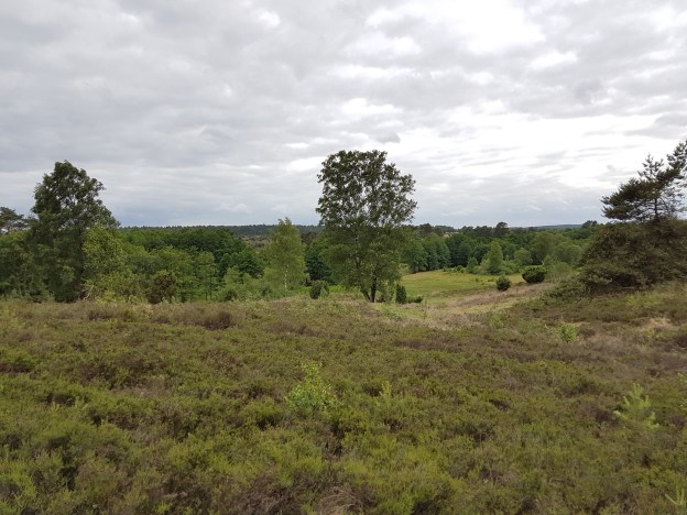 Am Dienstag, 12.06.18 gehe ich von Undeloh aus wieder größtenteils auf dem Heidschnuckenweg, dessen eckigen Bogen man gut zu einer Rundwanderung in Form eines Dreiecks verbinden kann. Zu Anfang suche ich mir Wege durch den hübschen, lichten Kiefernwald südlich des Ortes in Richtung Wilsede abseits der breiten Sandpisten für die Kutschfahrten.