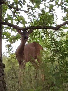 Danach führt der Weg fast die ganze Zeit durch schönste, ausgedehnte Heideflächen, die allerdings an einem bedeckten Junitag nicht ihre Sternstunde haben. Auch hier schlage ich mich an geeigneter Stelle in den angrenzenden Wald und mache wieder eine schöne Hängemattenpause; durch die häufigen und längeren Unterbrechungen dieser wunderbaren Tour wird es schon langsam dämmrig, bis ich wieder die Ausläufer von Undeloh erreiche – und da sehe ich voller Entzücken noch diesen jungen Mann hier:
