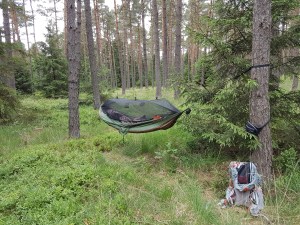 Kurz vor Undeloh mache ich ein Päuschen abseits vom Weg; ich habe nicht meine geliebte Übernachtungshängematte dabei, sondern eine ultraleichte Version, die sich bestens für eine entspannte Pause eignet, aber nicht für eine ganze Nacht. Tatsächlich schlafe ich noch eine gute Stunde, dann sind es nur noch rund 3km bis Undeloh, wo ich schnell meine Unterkunft finde und dann zum Essen gehe (Spargel!).