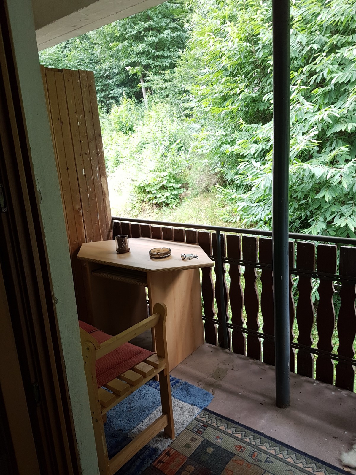 Dann geht es noch eine Weile auf einfachen Wegen bergan, und gegen 17:30 erreiche ich das Hotel. Es wird geführt von einer älteren Dame (am nächsten Tag erfahre ich, dass sie Jahrgang 1929 ist) und existiert seit den 50er-Jahren. Teile der Einrichtung dürften noch aus dieser Zeit stammen, andere aus den 70ern (farngrüne Duschwanne und Klo) und aus neuerer Zeit (Flachbildfernseher und Fußboden). Ich habe sogar einen Balkon und finde mein Zimmer völlig ok.