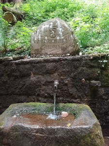 Schon wieder habe ich meinen Gandalf-Stab vergessen, und muss einen neuen zurecht schnitzen; der aktuelle stammt von einer toten Birke. Es ist wieder sehr warm, und so freue ich mich über den Brunnen im Wald zum Trinken und Abkühlen.
