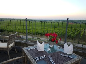 Auch ich esse dort später; wie so oft, bin ich die Einzige, die allein am Tisch sitzt. Hier ist für mich ein Tisch reserviert, der nun auch noch direkt in der Mitte der Terrasse steht – wie auf dem Präsentierteller. Egal, ich genieße leckeres und teures Abendessen mit einem schönen Weißburgunder aus der Region.