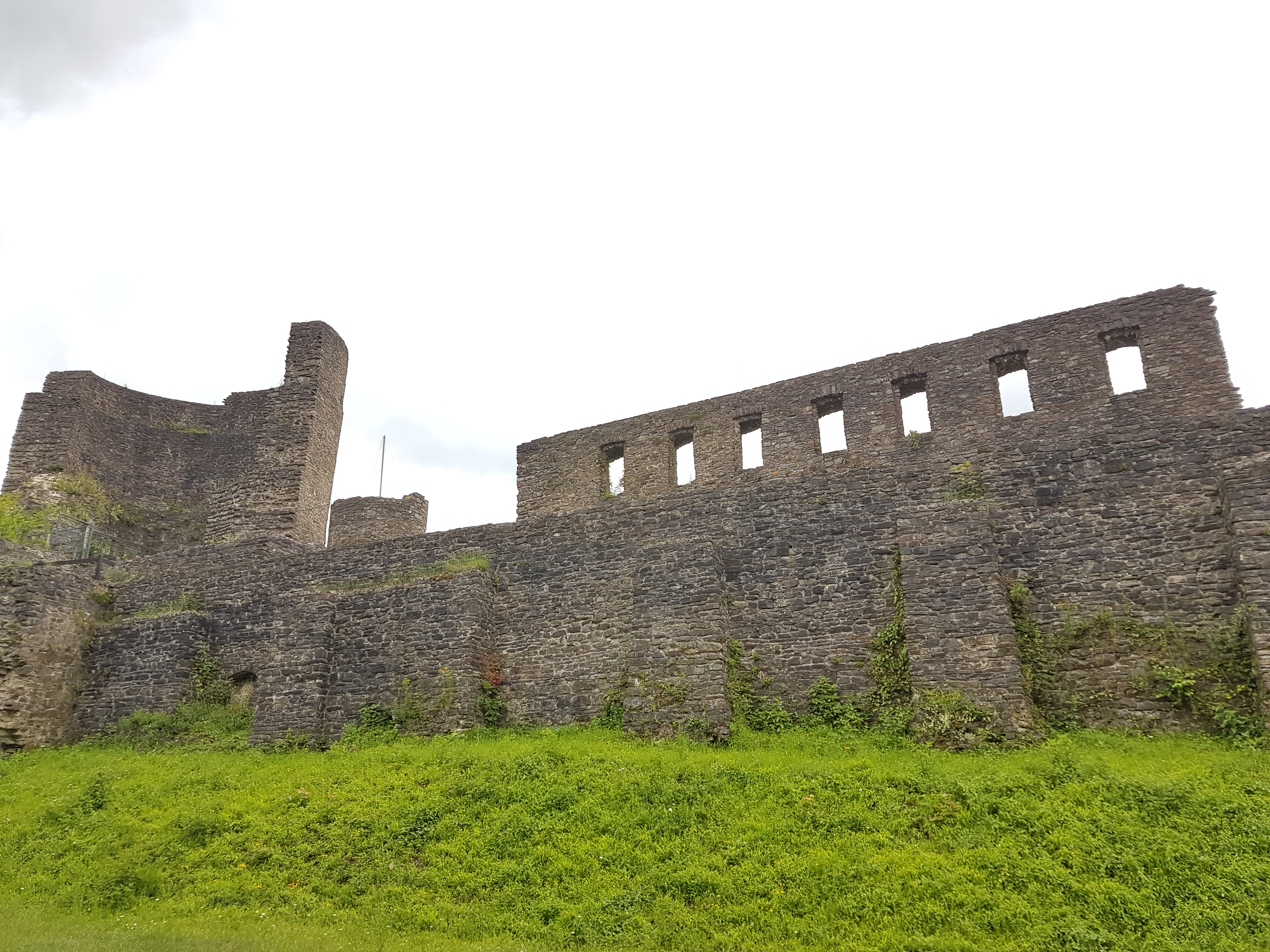 Am Sonntag, 17.06. fahre ich mit der S-Bahn bis Schladern, um dort einen der Erlebniswege Sieg zu erkunden; mit 8,1km Rundwanderung keine zu große Herausforderung. Am Anfang geht es so mittelinteressant durch den Ort und dessen Ausläufer, bevor es auf einen Höhenzug hinauf geht, und von dort zur Burgruine Windeck. Ich nutze das Angebot, mit dem Handy eine nett gemachte Bandansage anzuhören, wobei ein fiktiver „Edler“ des Mittelalters die Burganlage erklärt.