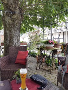 Danach geht es runter zum Ort Altwindeck; der Weg führt direkt am Museumsdorf vorbei, das aber erst in einer Stunde öffnen wird. Also kehre ich erst einmal ein und fühle mich gemütlich unter einer Linde sitzend gut aufgehoben.