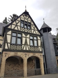 Am Montag, 18.06. ist kein sehr gutes Wetter, und ich beschließe wegen des angekündigten Regens einen Stadtrundgang durch Eitorf zu unternehmen. Auch dafür gibt es einen gpx-Track, den ich herunterlade und abarbeiten will. Spektakulär ist dies nicht, aber erholsam. Am Rand der ausgedehnten Grünanlagen mit schönem alten Baumbestand liegen die Schulen, und hier werde ich von 4 jungen Türkinnen – alle 14 Jahre alt – angesprochen und über’s Wandern, die Natur und Hamburg ausgefragt. Es ist ein sehr netter Austausch, und ich freue mich über die liebenswerte und gesunde Wissbegier der jungen Damen. Hoffentlich treibt sie ihnen niemand aus, und hoffentlich gehen sie wirklich raus in die Natur und lernen sie kennen und schätzen.