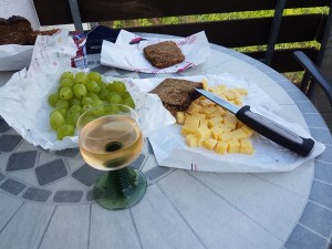 Das muss mich nicht weiter stören, denn ich habe es nicht mehr weit. Und später hole ich mir dann Zutaten für ein wunderbares Abendbrot aus dem einzigen Lebensmittelladen; der Inhaber ist leidenschaftlicher Käsespezialist und so genieße ich 2 exzellente Käsearten, exzellenten Wein, Brot und Weintrauben.