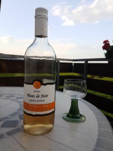 Auch heute bezieht es sich, und es grummelt in einiger Entfernung. So gesehen bin ich ganz froh, wieder sehr früh in meinem Hotel anzukommen, das zu einem der vielen Weingüter der Gegend gehört. Mein Zimmer ist super, groß, Balkon zur Rheinebene nach Osten, und es hat eine Minibar mit einer kleinen, gekühlten Auswahl der Weine direkt vom Erzeuger, einen Safe und sogar eine Insektengittertür. Wunderbar! Ich genieße den Nachmittag barfuß und im Hemd. Am Abend gehe ich nach einem kurzen, nicht ernst zu nehmenden Schauer Essen, was allerdings ein bisschen schwierig ist, denn hier in Burrweiler hat nur ein Restaurant geöffnet. Ich werde zu einem Ehepaar an den Tisch gesetzt, denn es gibt keine freien Tische mehr. Wieder zu gehen ist keine Option, denn ich habe Hunger und nichts sonst zu essen. Das Ehepaar hält das Höflichkeitsprotokoll ein und hat nichts dagegen; aber es kommt kein Gespräch zustande, und so gehe ich bald wieder. Draußen hat sich das Wetter beruhigt, es ist wieder ein warmer, freundlicher Sommerabend fast ohne Wolken. Ich schlendere zurück trinke meinen Blanc de Noir Spätlese feinherb