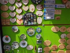 In Rüdesheim angekommen trifft mich mit voller Wucht das, was sich ausländische Touristen so unter „typisch deutsch“ vorstellen: Es gibt Lederhosen, Bempel in allen Größen, Kuckucksuhren und sinnbefreite Sprüche auf Holztäfelchen: