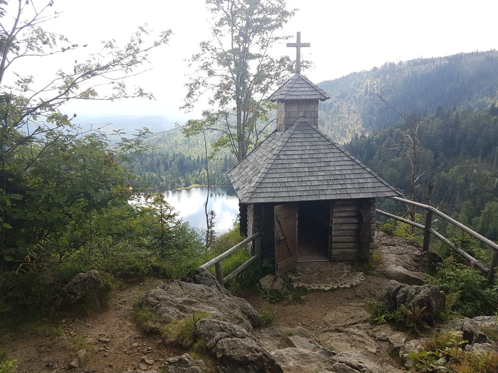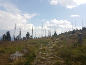 Am Sonnabend, 28.07.2018 starte ich zu einer Tour, die ich vor Jahren schon mit Kai gegangen bin: Im tiefsten Nationalpark vom Gfällparkplatz eine Rundwanderung zum Gipfel des Rachel (mit 1.453m der zweithöchste Berg nach dem Großen Arber) über den Rachelsee, die Kapelle und nach dem Gipfel über das wieder geöffnete Waldschmidthaus. Die „Igelbusse“ und die Waldbahn funktionieren reibungslos für die Fahrten von Frauenau zum Startpunkt und zurück, und etliche weitere Wanderer nutzen sie (Wochenende!).