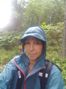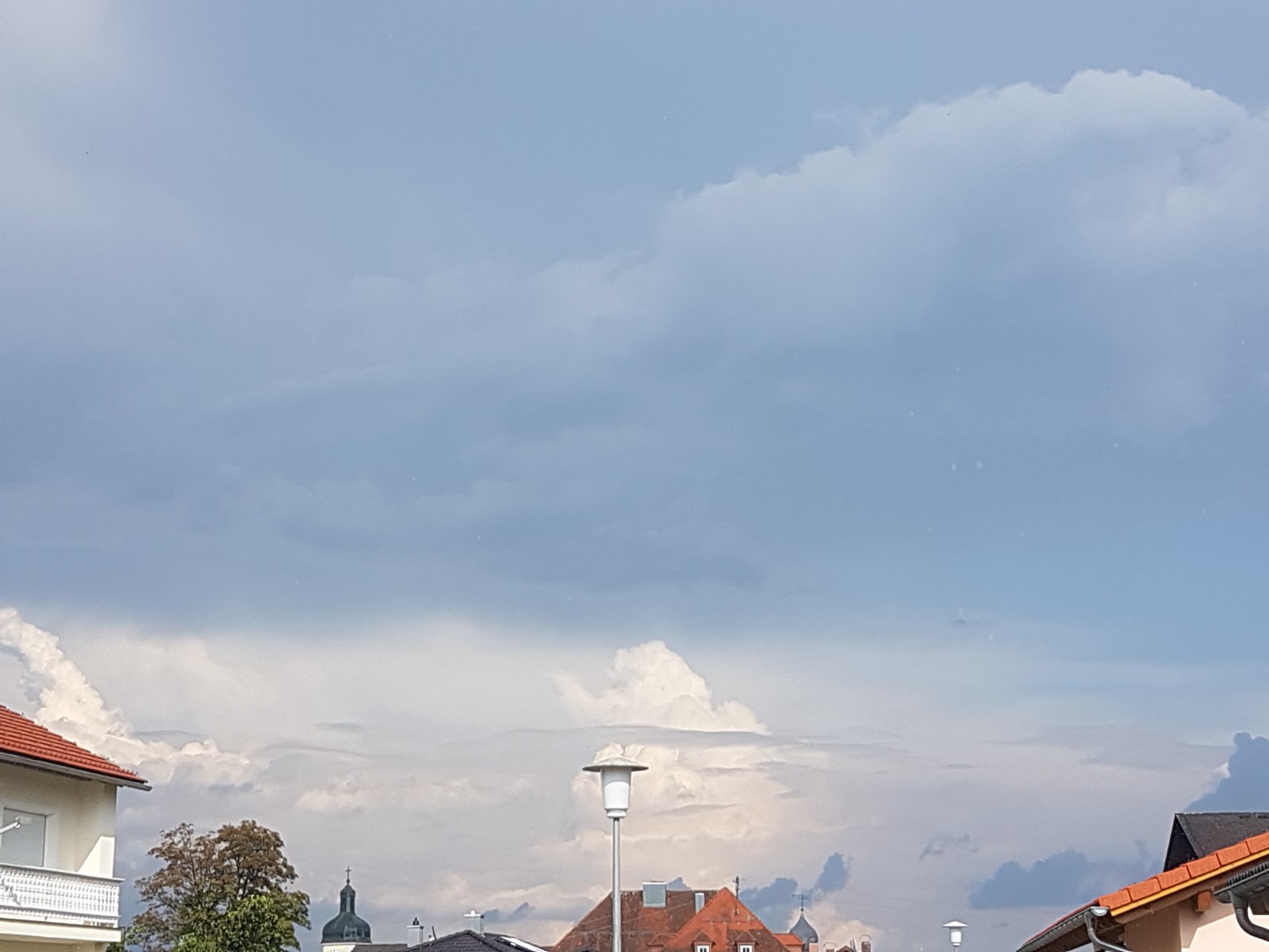 Schließlich reiße ich mich los und gehe in Richtung Waldhäuser; diesen Ort muss ich durchqueren, bis ich wieder in den Wald komme und aus anderer Richtung die Fredenbrücke erreiche. Aber kurz vor dem Ortseingang bezieht sich der Himmel, und es sieht bedrohlich nach heftigem Regen aus. An der Straße, der ich durch den Ort folgen soll, sehe ich links ein sehr schönes Ausflugslokal und rechts eine Bushaltestelle. Tatsächlich ist es eine Haltestelle der Linie, die ich für die Rückfahrt nach Spiegelau benutzen wollt. Nach einem nochmaligen Blick in den Himmel beschließe ich, hier etwas zu essen und den Bus bereits von hier aus zu nehmen. Tatsächlich ist das eine gute Entscheidung, denn kurz darauf fallen wahre Sturzfluten, die mir sehr schnell den Wanderspaß verdorben hätten. Aber so kann ich ihnen bei ganz wunderbaren Möhren-Zucchinipuffer mit Salat zusehen und mir allmählich klar machen, dass meine letzte Wanderung während des Sabbaticals genau hier plötzlich vorbei ist.