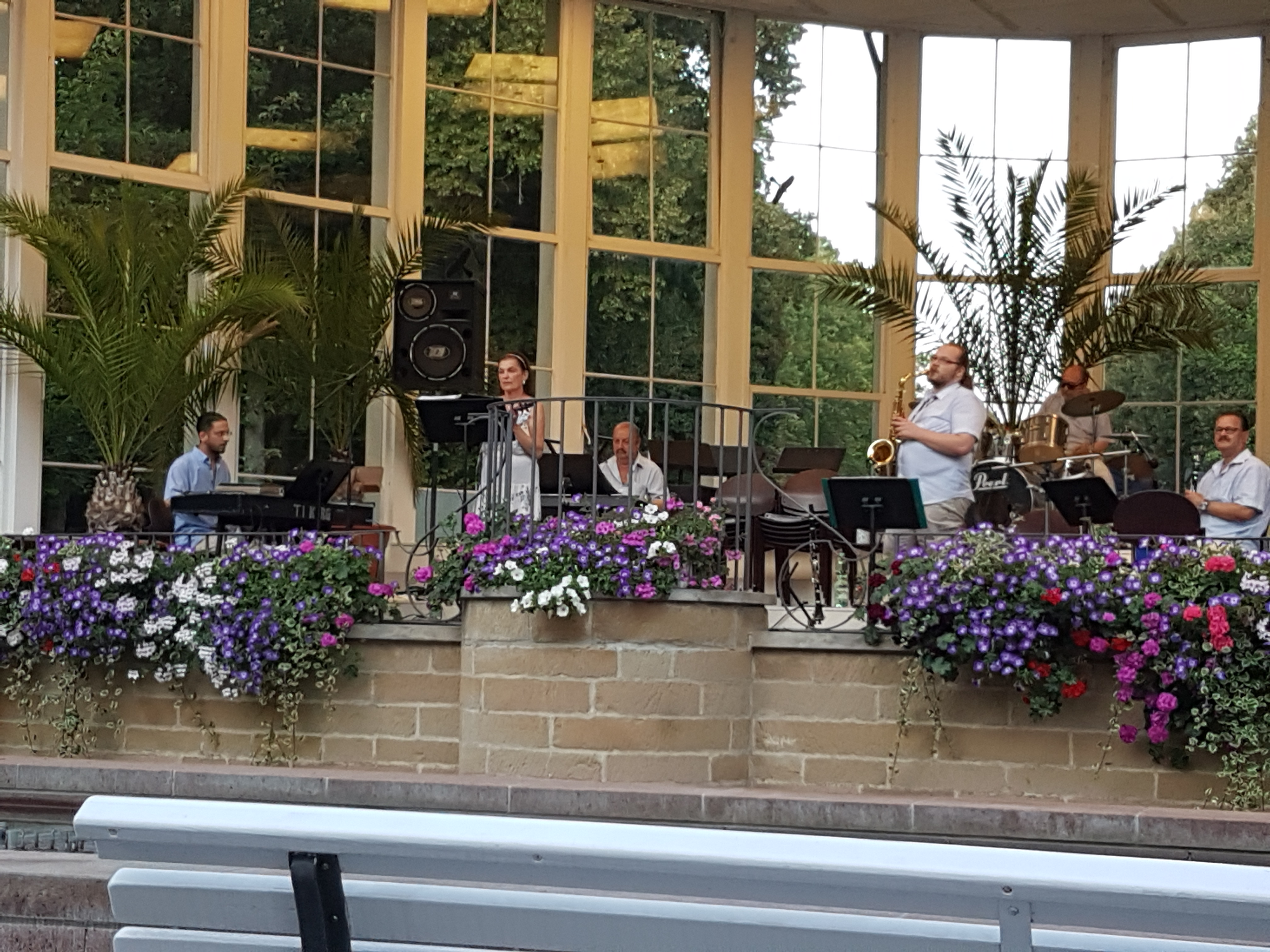 Nach dem Einkehren will ich gerade aufbrechen, um zum Hotel zurück zu kehren, da füllen sich die Bankreihen vor der Konzertmuschel – und tatsächlich gibt es nun am Abend noch ein Kurkonzert. Ich setze mich wieder, höre zu und summe mit, fast ist es wie ein Abschiedskonzert für mich.