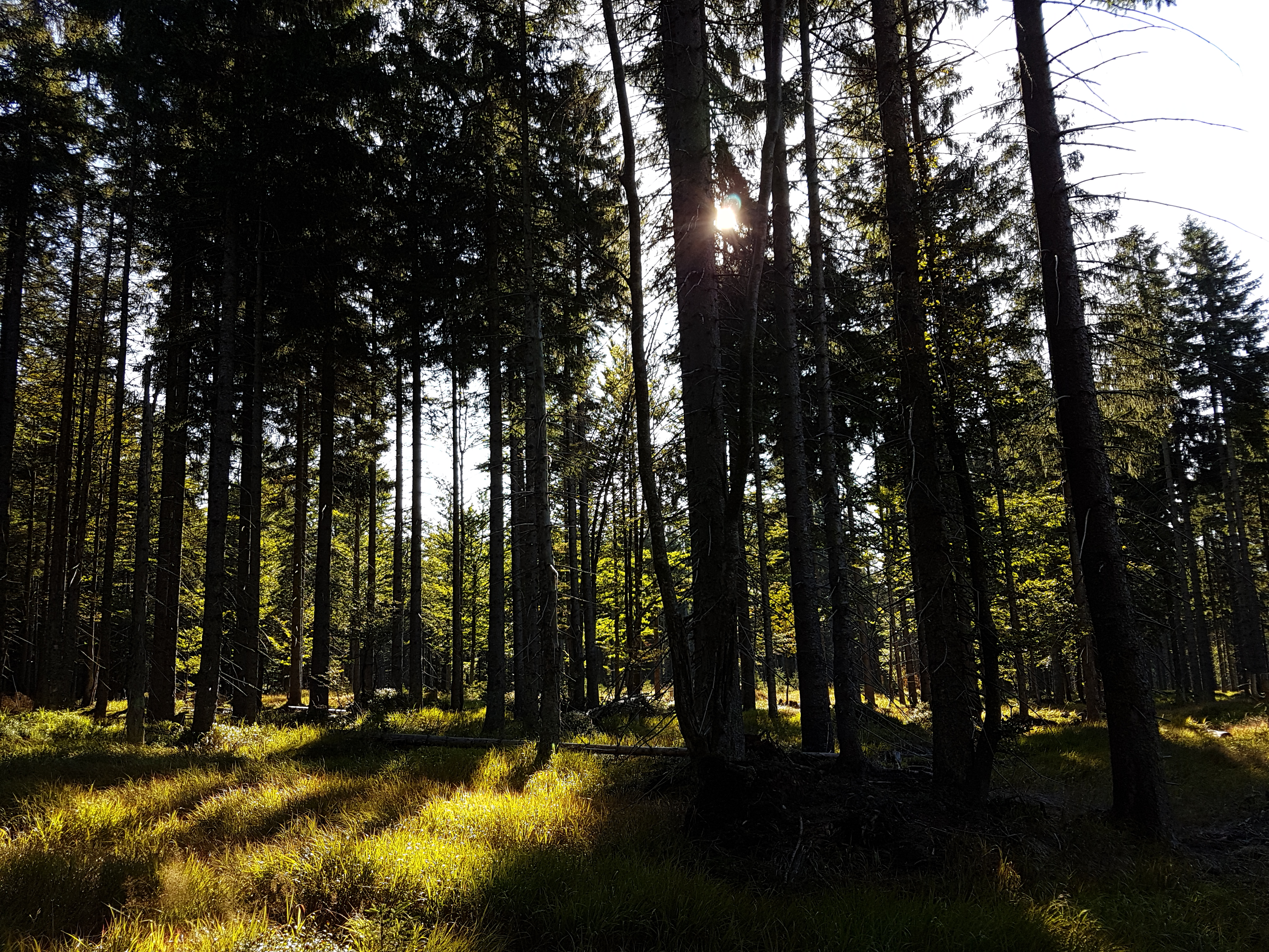 Gegen Morgen ist es besser, die Schmerzen sind weg und der Blick geht direkt in den sonnendurchfluteten Wald – ein Anblick, der zumindest bei mir immer wieder auf unbeschreibliche Weise alles in’s Lot bringt und wohltut.